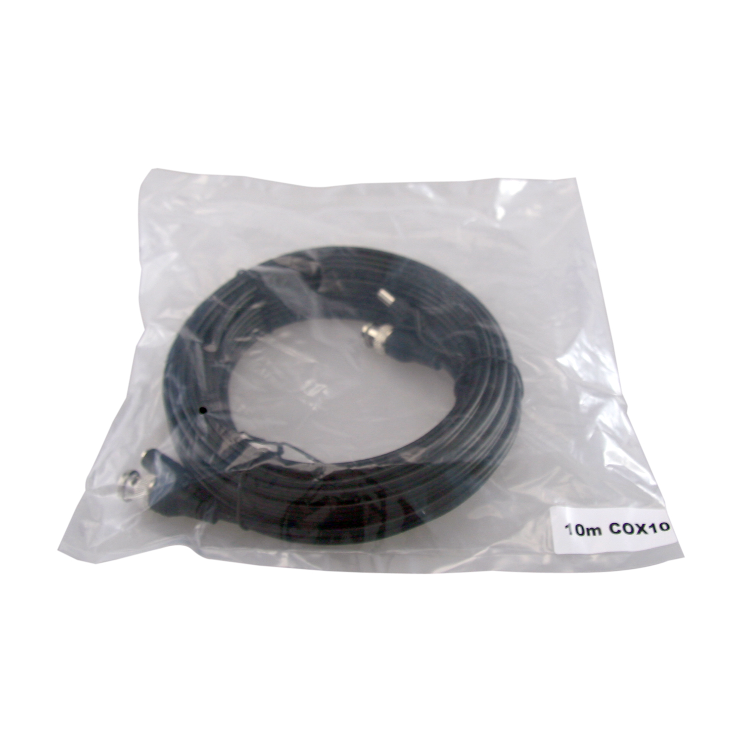 Cabo coaxial SAFIRE extensor para sinais de vídeo e alimentação. Cabo combinado RG59 + DC. Mínima perda. Comprimento fixo de 10 metros, com conector macho BNC de vídeo nas extremidades.