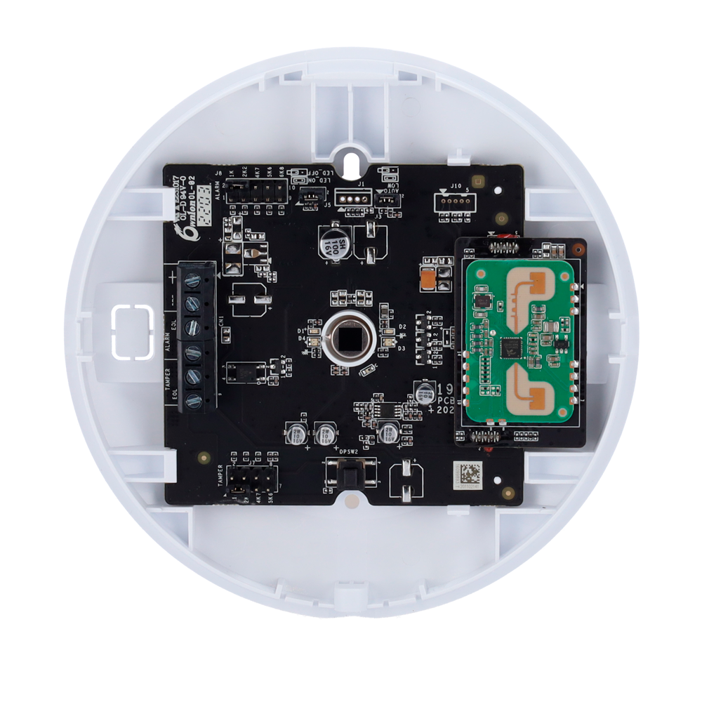 Detetor de teto com fios de tecnologia dupla – Faixa de detecção 12 m – Resistências de fim de linha (EOL) seleccionáveis – Alimentação 9~16 VDC – Uso interior – Certificado Grau 2