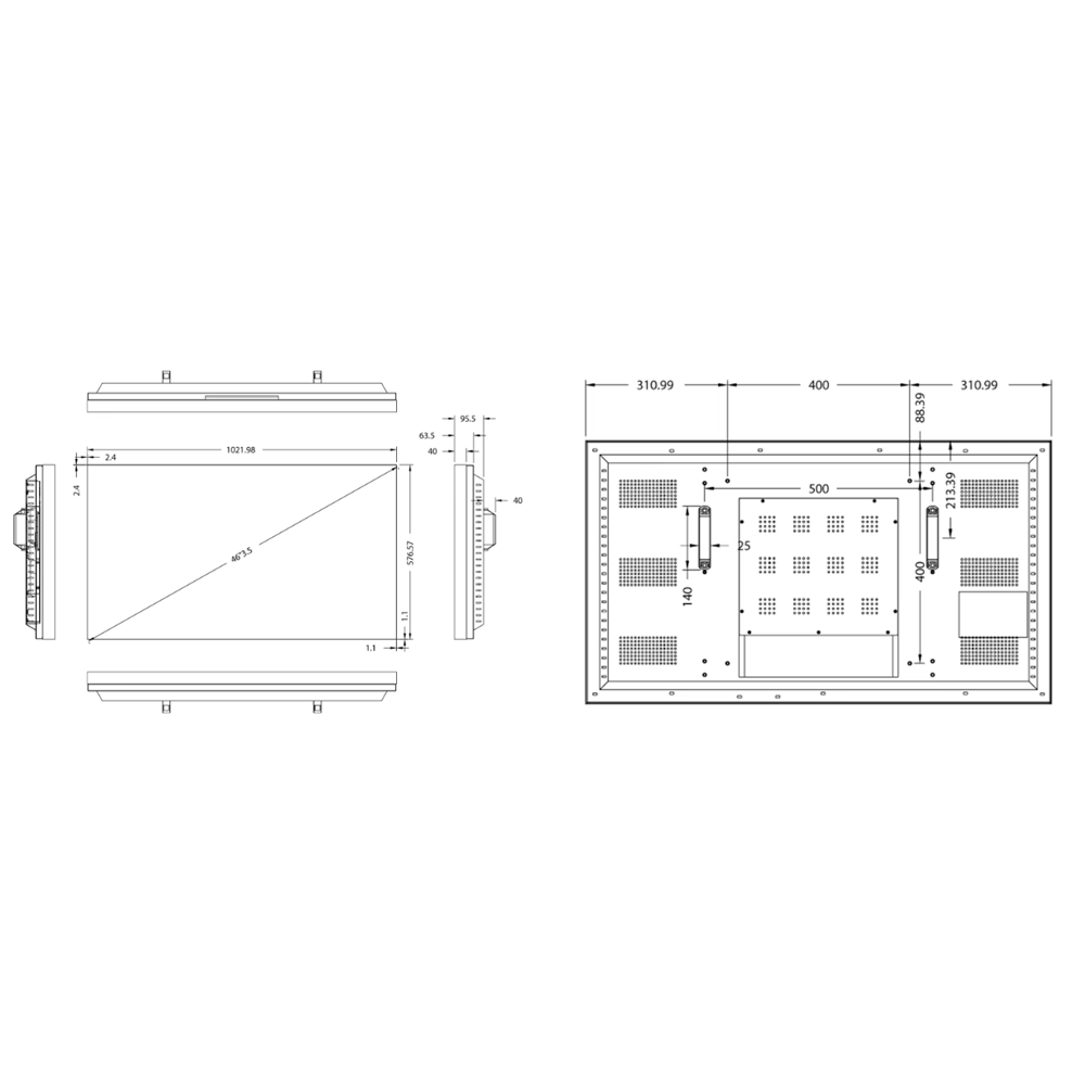 | Dimensões | 1021.98 mm (Largura) x 576.57 mm (Al) x 95.5 mm (Fundo) |