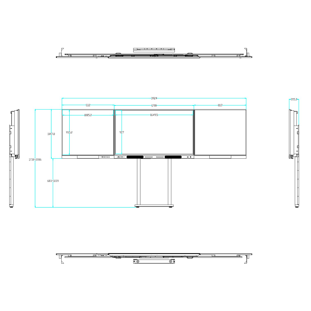 – Altura máxima (de suelo a la parte superior de la pantalla interactiva): 2086 mm