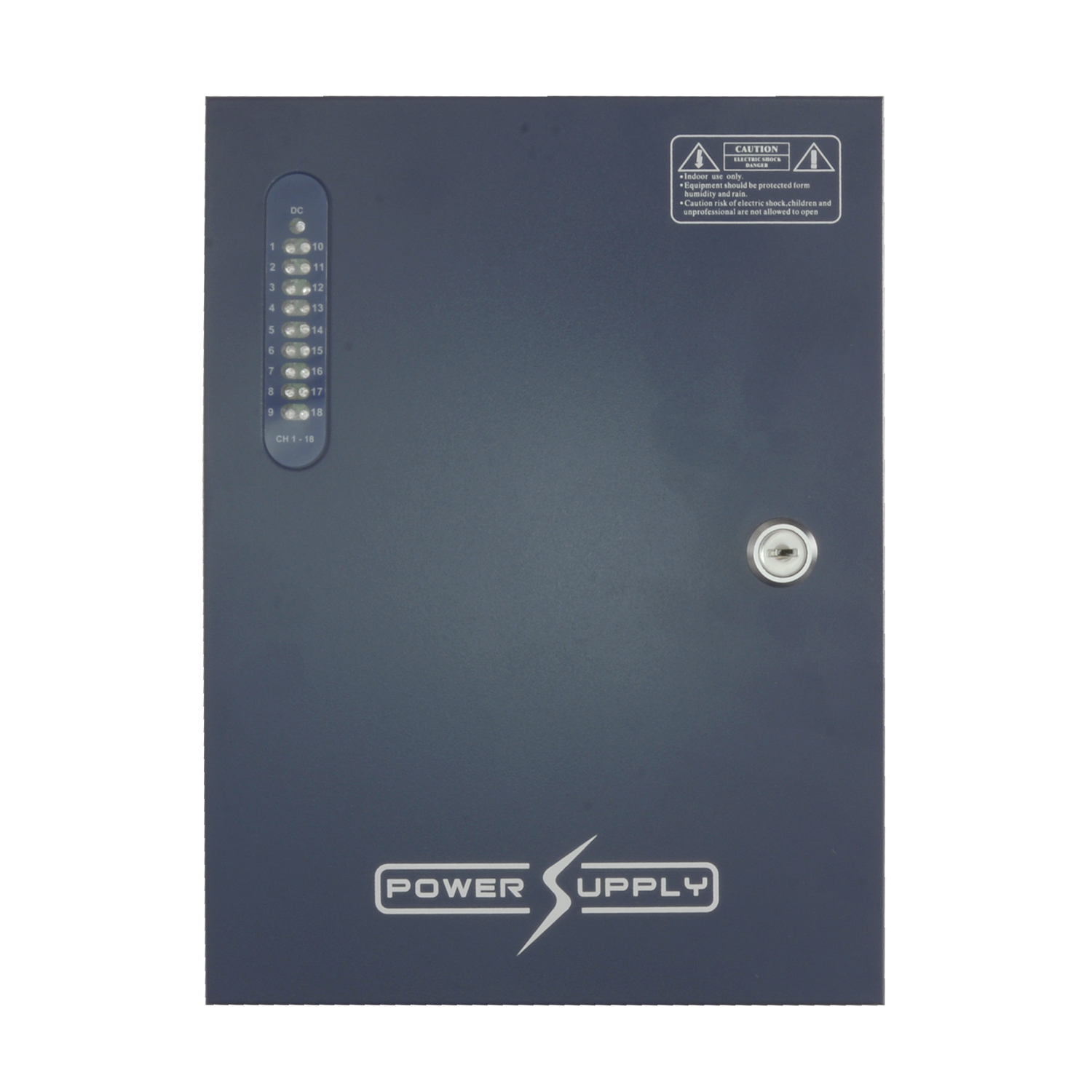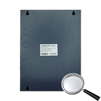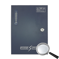 A fonte de alimentação fica alocada num armário metálico, com guarnições para cabos isoladas e fechamento com chave para maior proteção. Na parte dianteira dispõe de um indicador com LEDs de estado para cada saída com o objetivo de facilitar tanto a instalação como a manutenção.