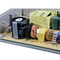 Fonte de alimentação AC/DC comutada. Estabilização precisa da tensão. Carcaça fechada em grelha para uma melhor dissipação de calor.